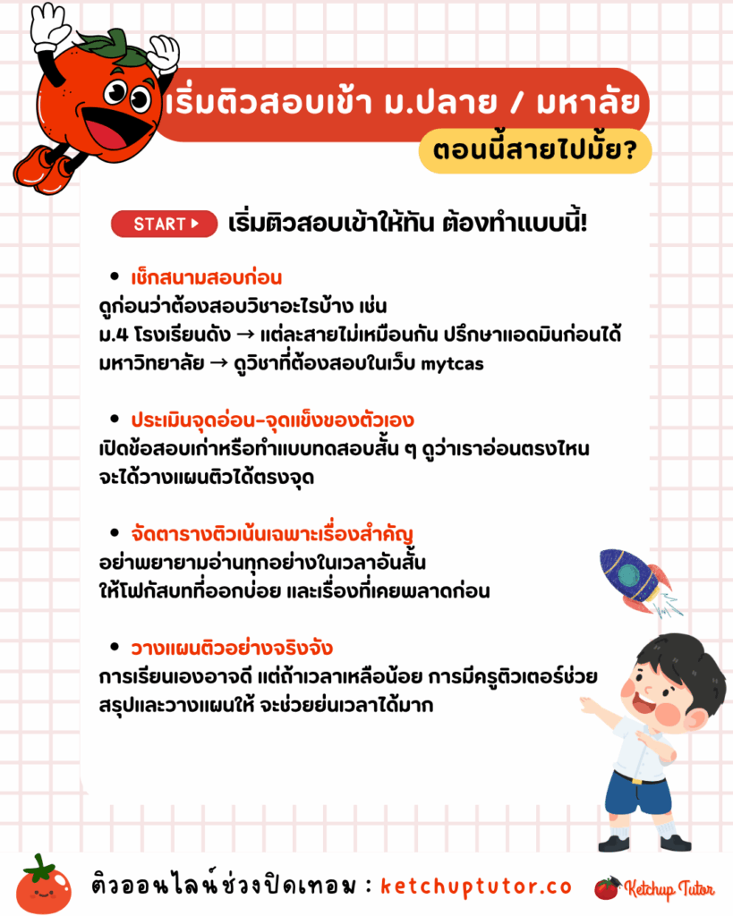เพราะทุกวันที่เริ่ม คือ “วันแรกของการเปลี่ยนแปลง” มาเริ่มติวสอบเข้า ไปด้วยกันกับ Ketchup Tutor ให้ปิดเทอมนี้ไม่สูญเปล่า แต่กลายเป็นจุดเริ่มต้นของความฝัน